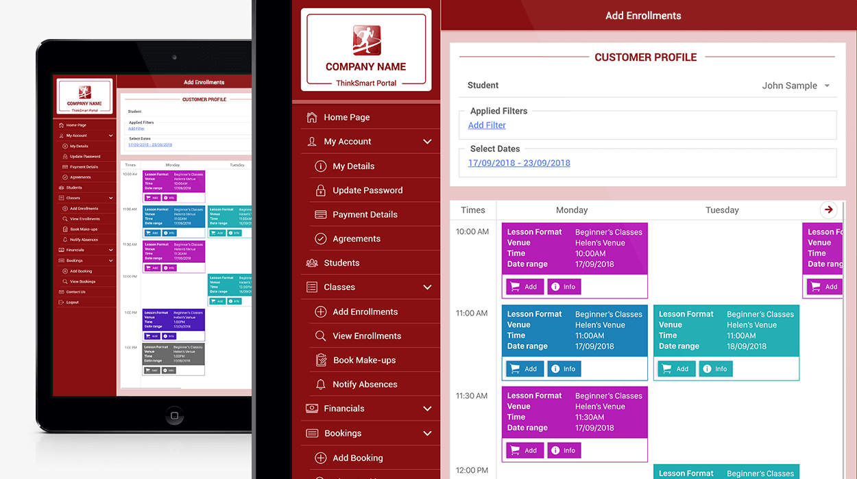 SportsBiz will keep your customer and student details organised. Our intuitive interface enables you and your staff to add and edit customers and students. Both customers and students can be made inactive when they no longer attend classes, keeping their information on file as historical records. Customers can also be divided into categories for easy access.